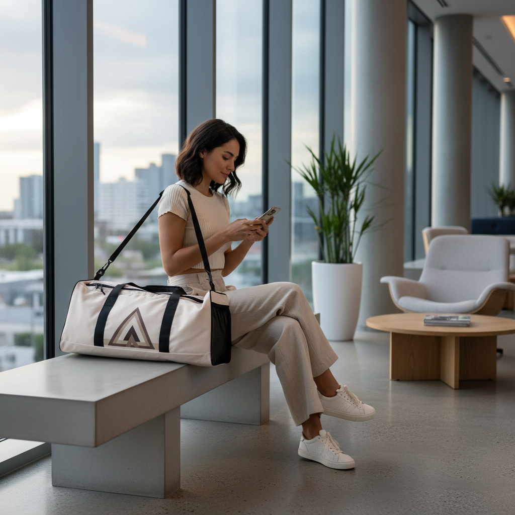 Béžová cestovní taška Triangles Duffle - Cestovní taška s geometrickým vzorem