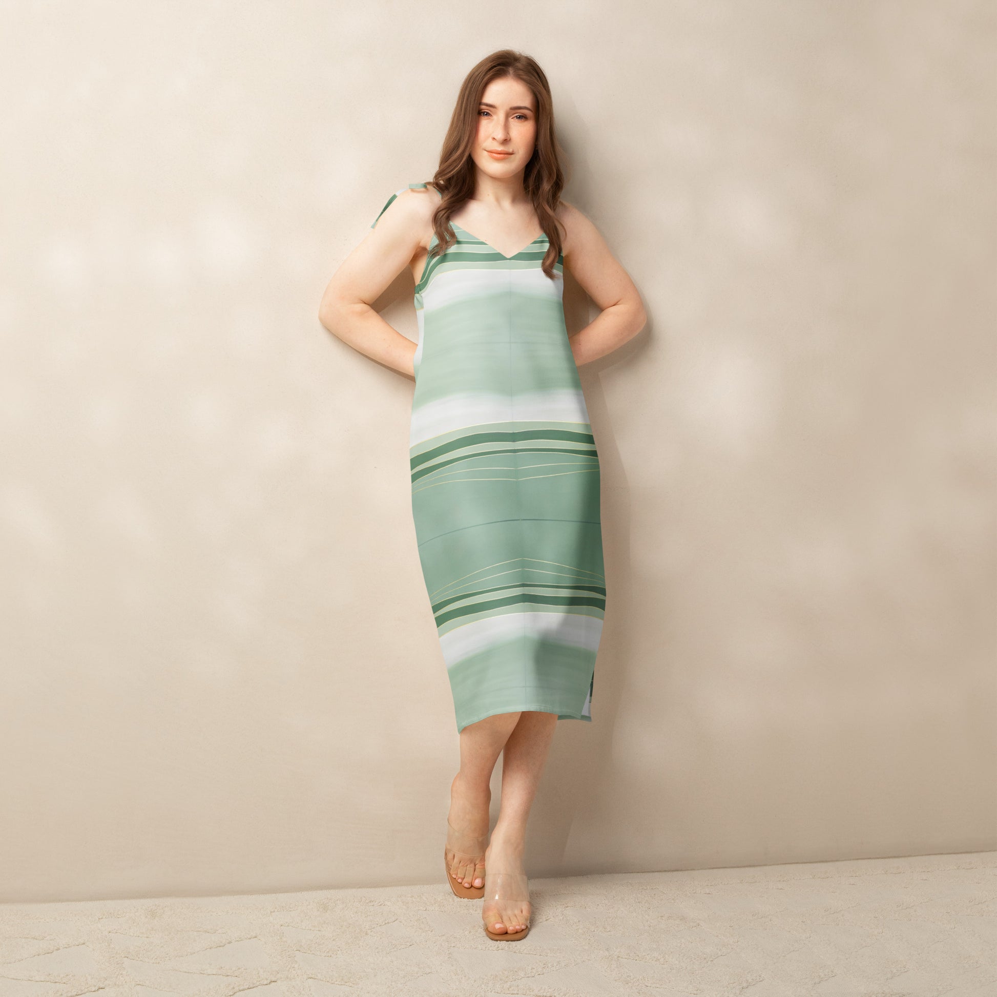 Floaty, flirty, and totally flattering—from daytime garden parties to dinner dates. This midi dress features a breezy side slit, adjustable tie straps, and a built-in bra for no-fuss style.
